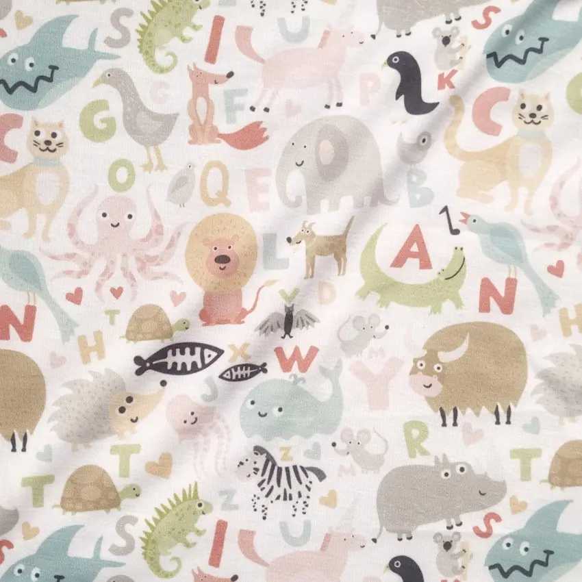 پارچه تریکو طرح فانتزی حیوانات و الفبا کد 4041055